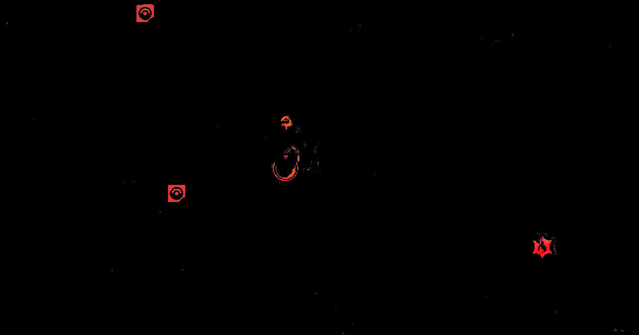 Next, we use Waterfill to get the red portions of the image. The Waterfill algorithm first applies the red color filter, and you're left with something like the following binary image.