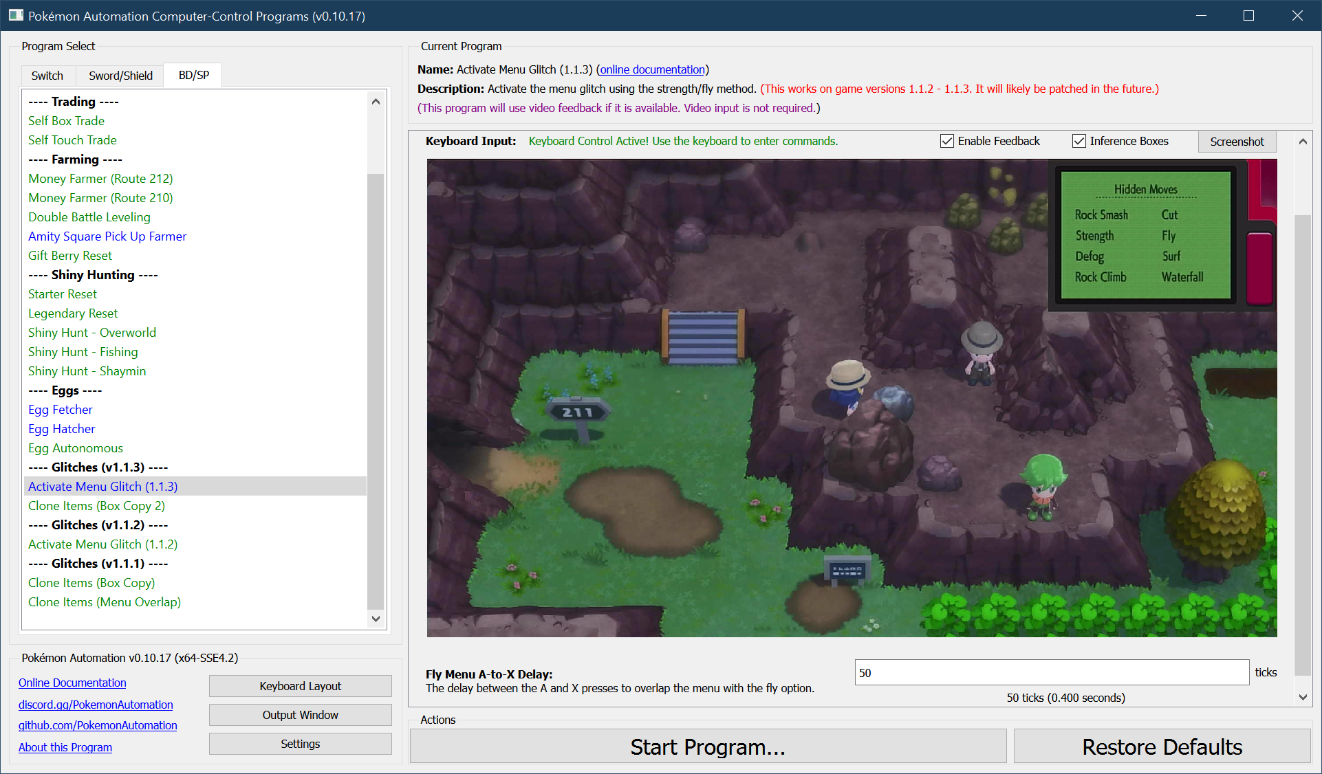 This program activates the menu glitch using the strength+fly method. It works on game version 1.1.3.