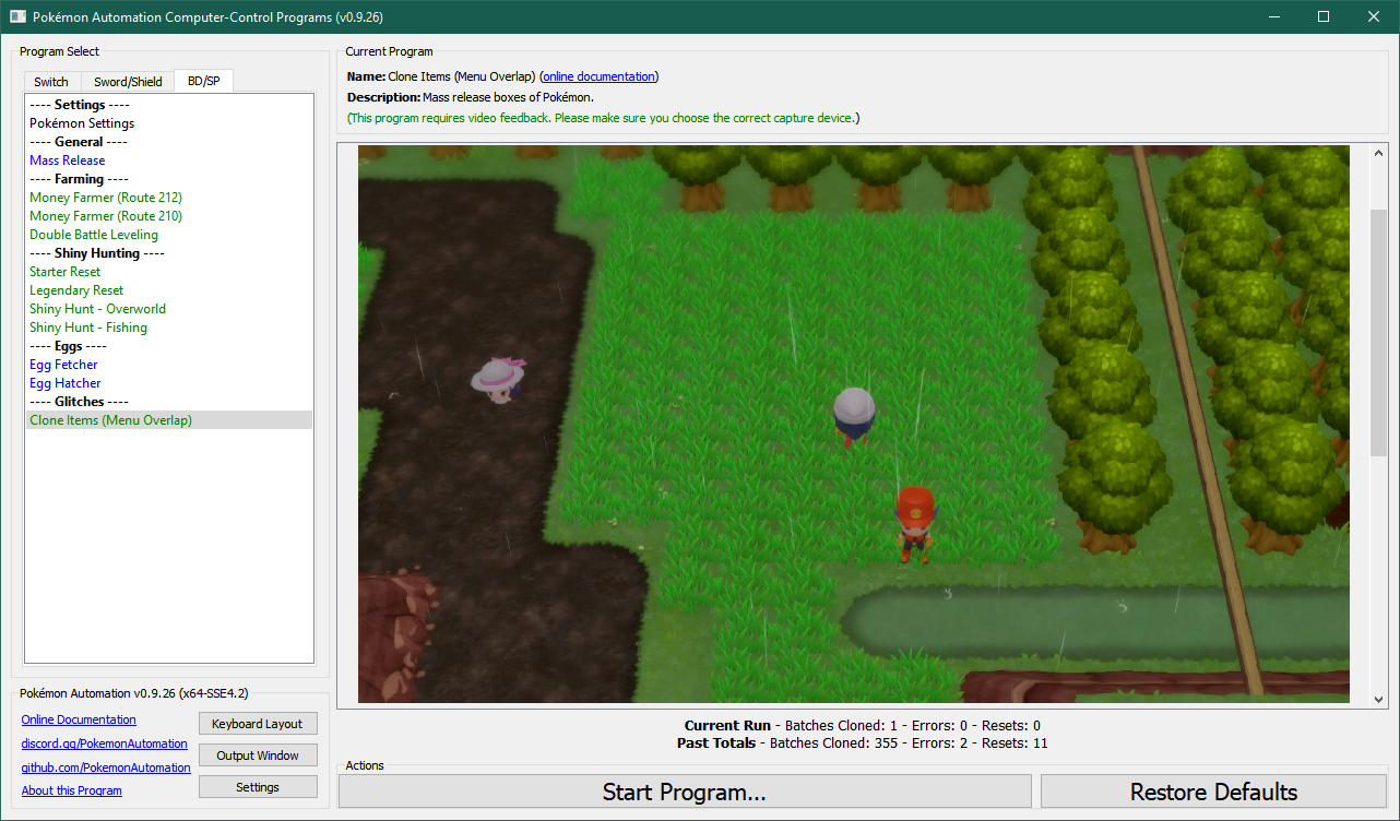 - Start the program in the overworld as pictured in the image.
