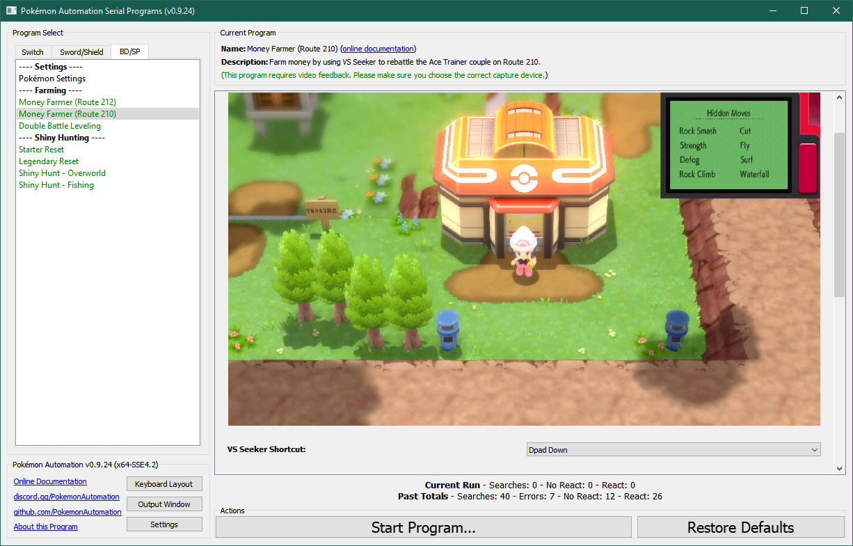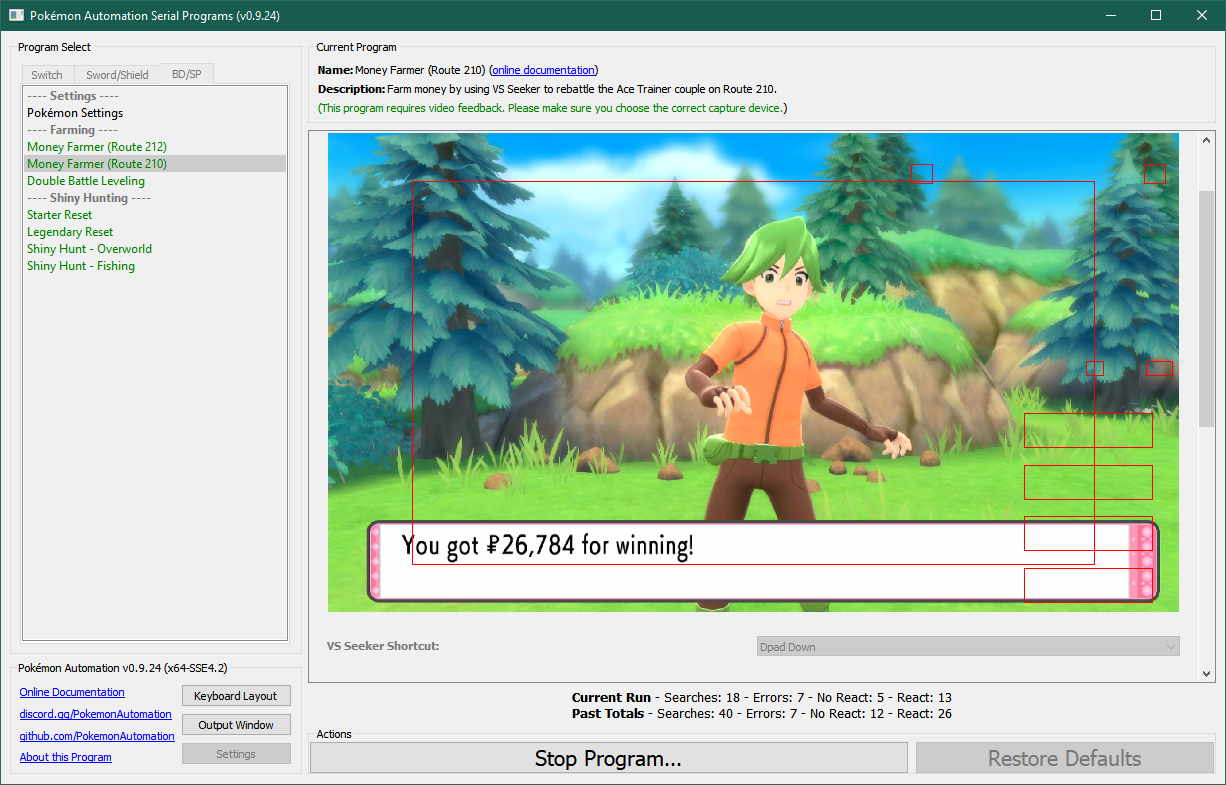 Once started, the program will walk to the following locations on Route 210 and repeatedly battle the Ace Trainer pair.