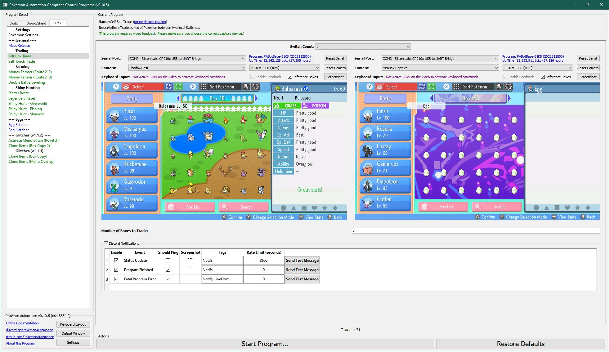 Once started, the program will swap all the Pokémon in the N boxes on the two Switches.