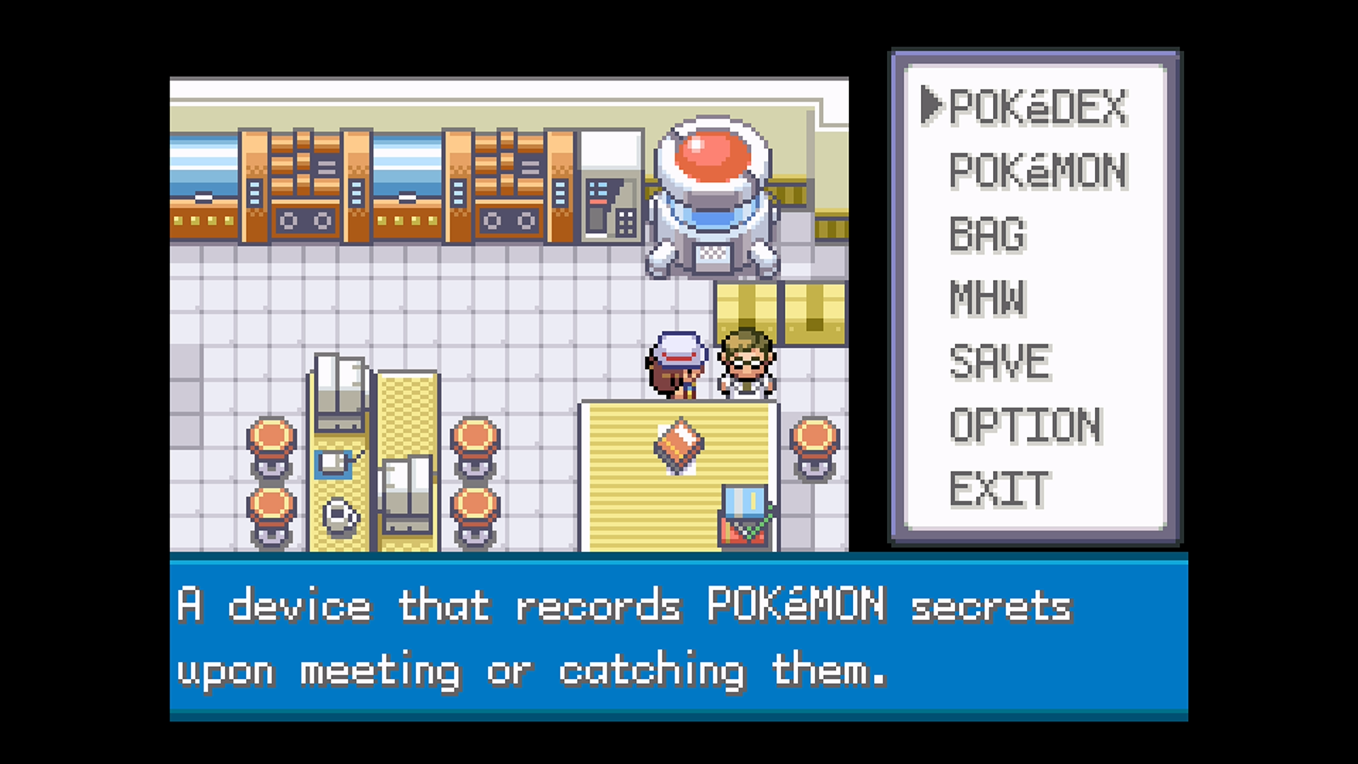 - Re-open the menu after saving and move the cursor to the top option (POKEDEX for all targets except starters, BAG for starters), then close the menu again.