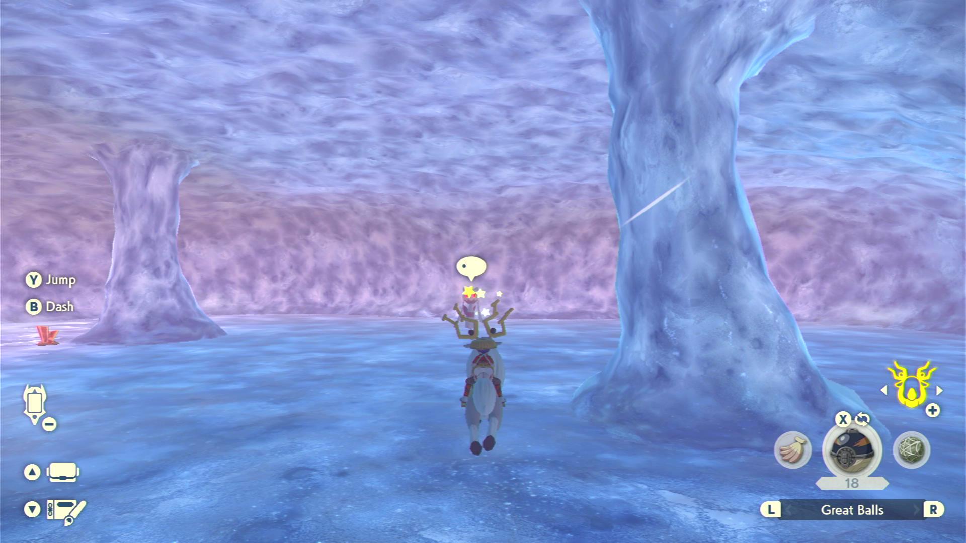 Goes from Jubilife Village to the Froslass Cave near Icepeak Arena to hunt for an Alpha Shiny.
