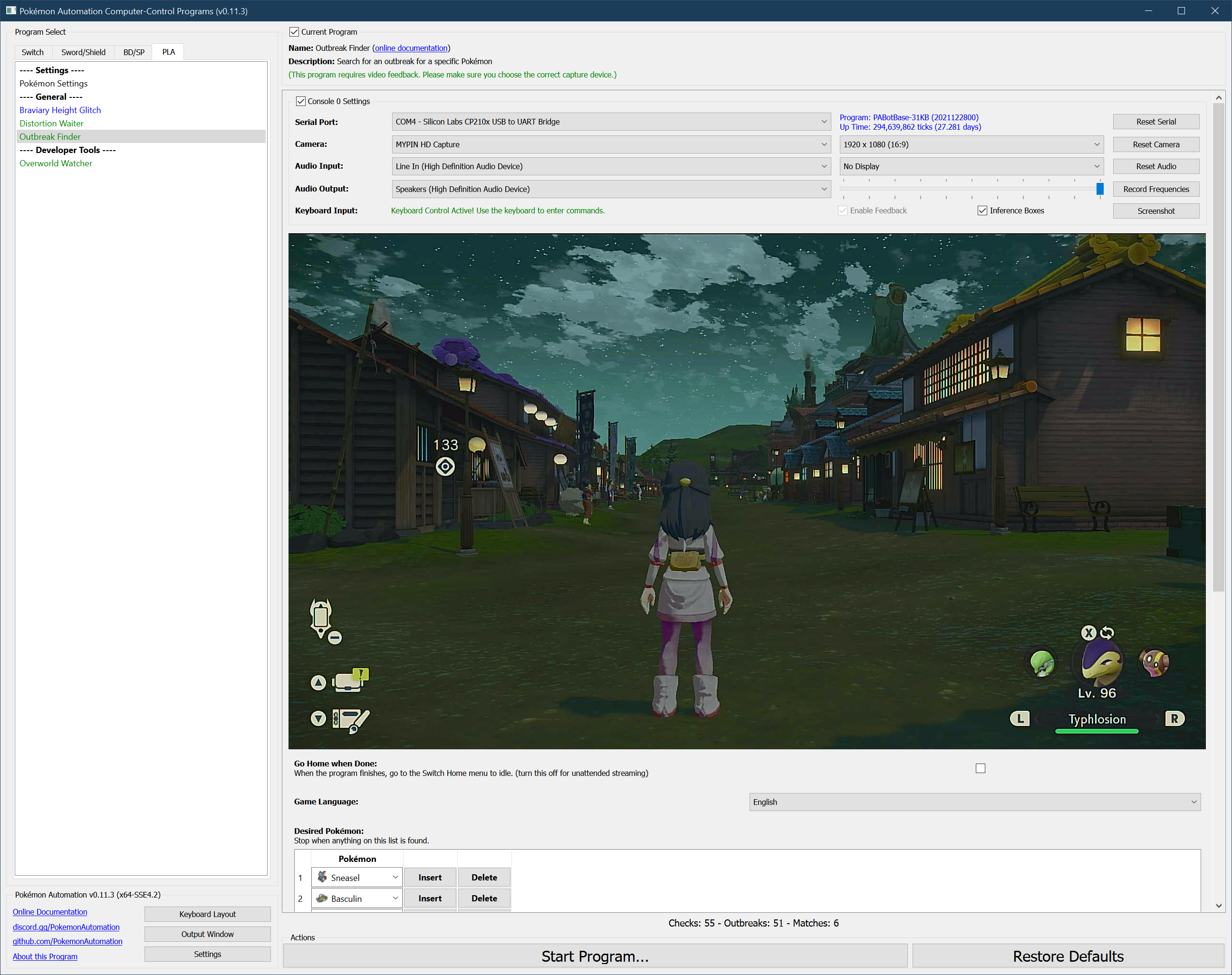 Note: you must have saved at Jubilife Village front gate before starting the program.