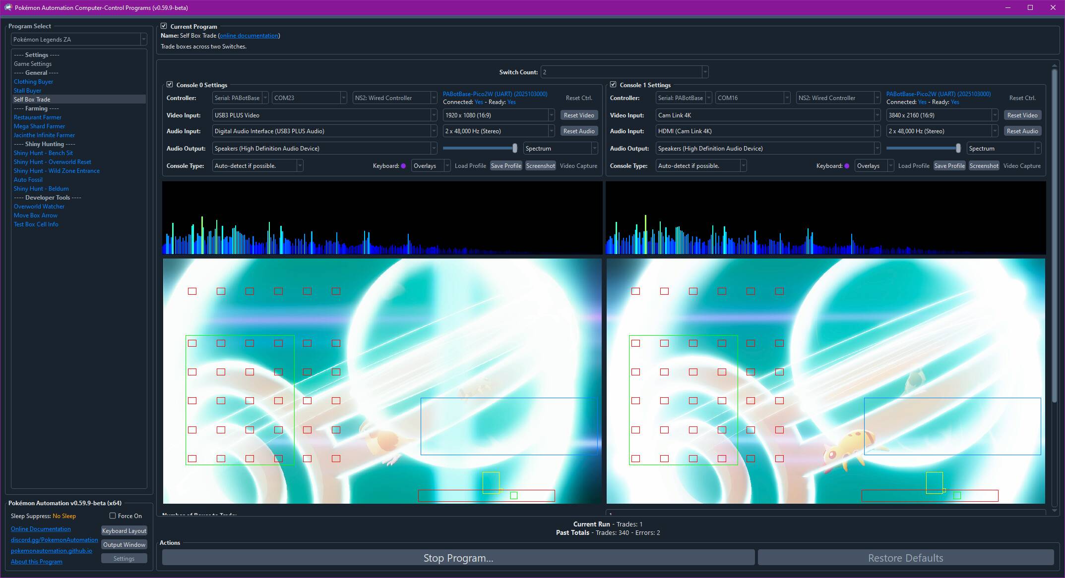 Once started, the program will swap all the Pokémon in the N boxes on the two Switches.