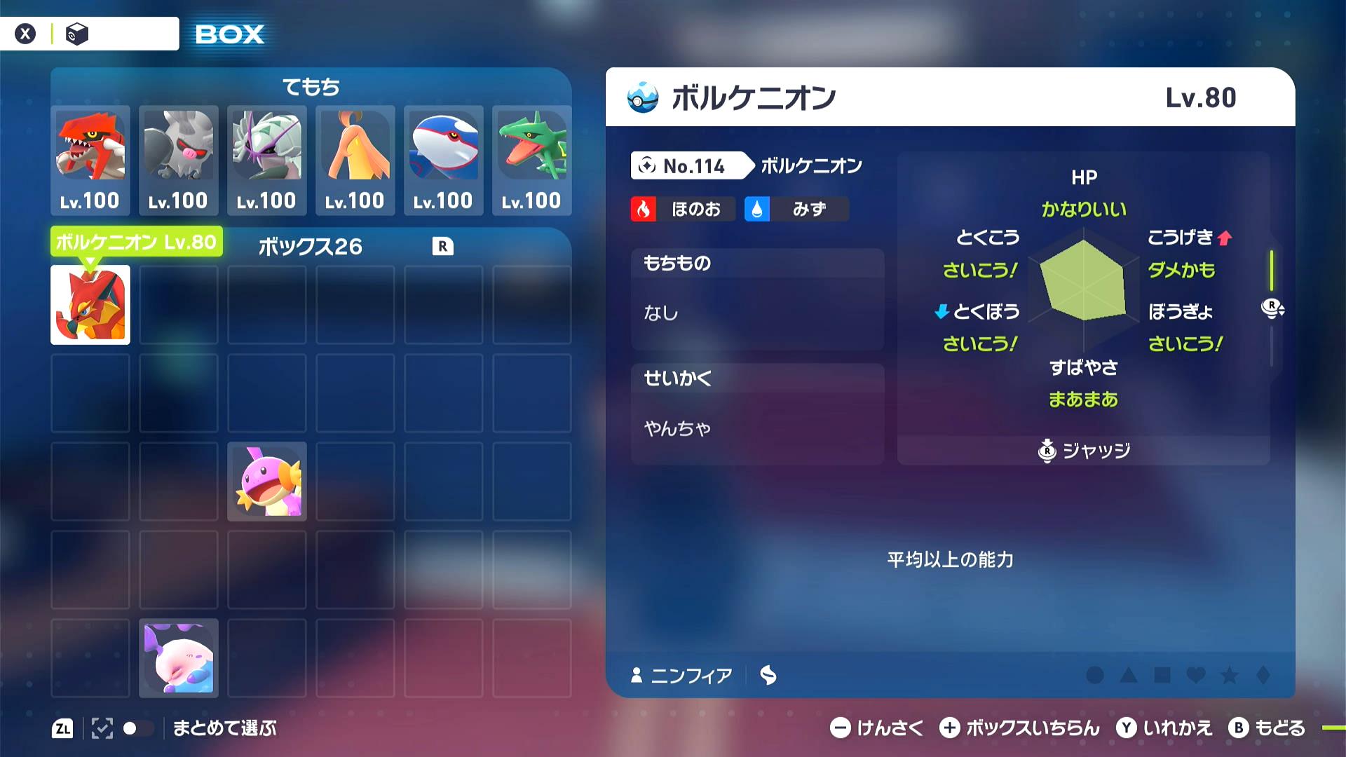 2. Make room on the top left slot in the box system, make sure that this is where the cursor is when opening the box system from the main menu. Have full party slots.