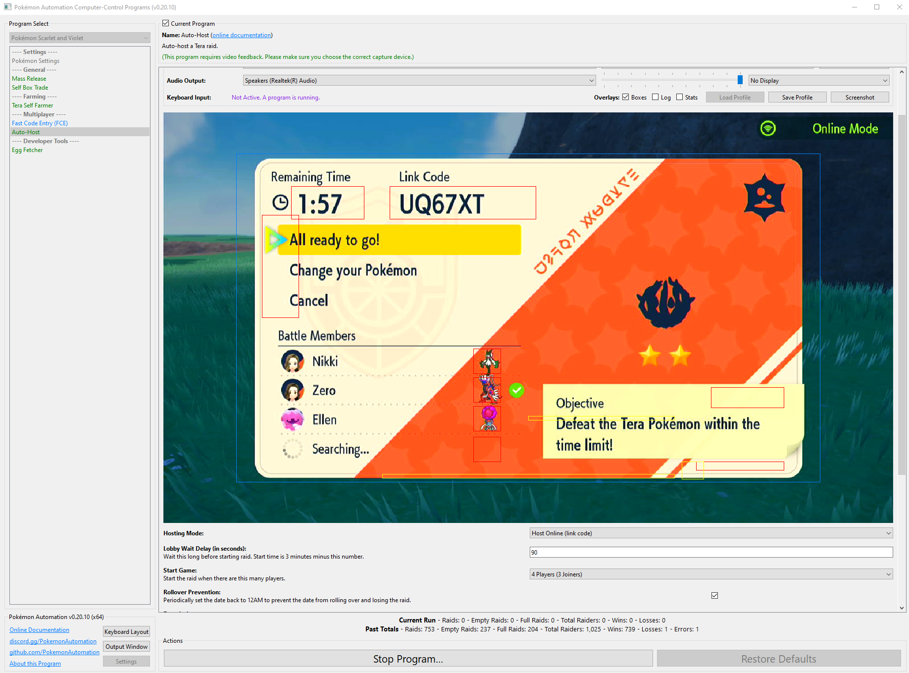 This program will go host a raid, battle it through using the first Pokémon and it's first move. Then reset after it returns to the overworld.