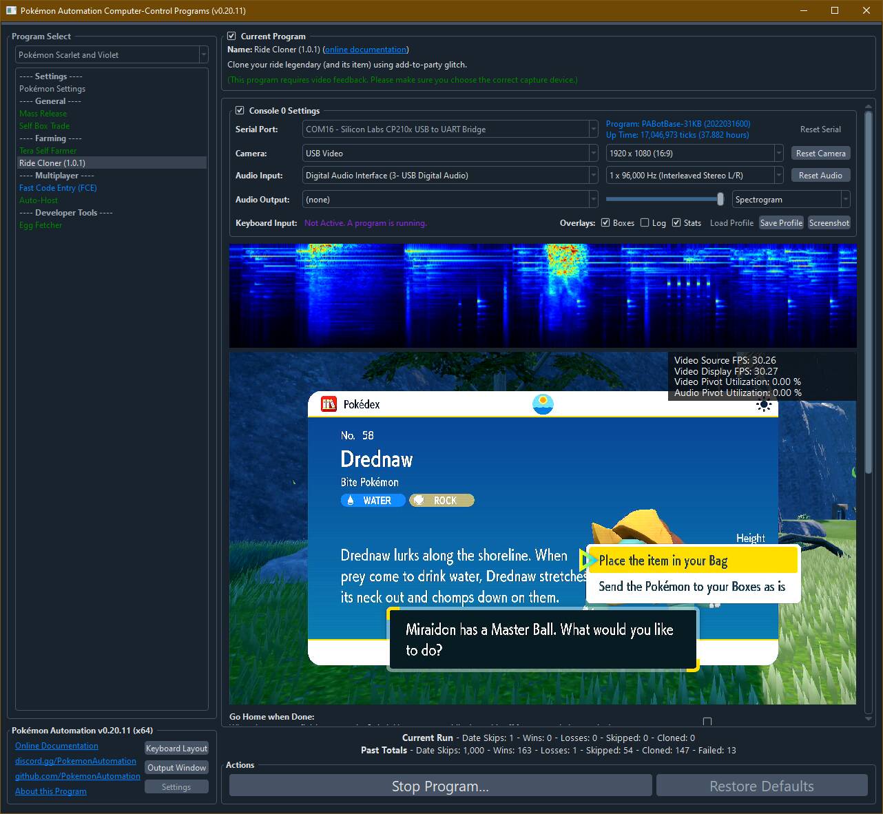 This program catches Pokémon the same way as the Tera Farmer. It day skips in front of the Tera crystal until one spawns, then it beats the raid, catches the Pokémon and inserts it in your party replaying your ride legendary. This program will also check shininess of the raid Pokémon and thus can be used to simultaneously shiny-hunt for hostable shiny raids.