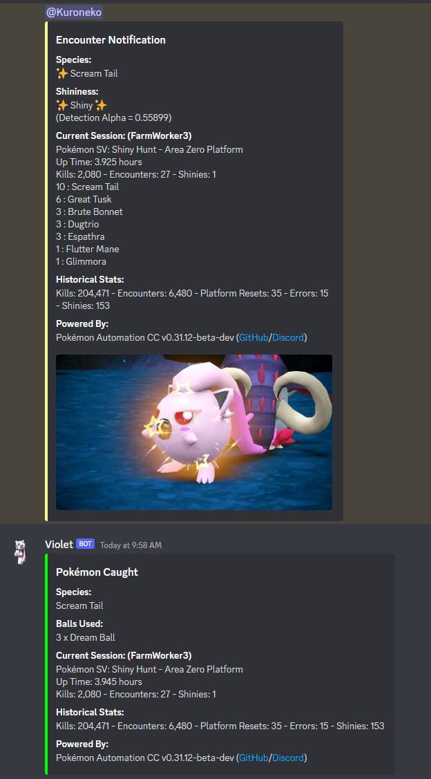 Since the program cannot see shinies in the overworld, it will not immediately try to engage them when they spawn. So there is a chance that a shiny will despawn (Dunsparce) or fall off the platform. Our statistics suggest around 30% of shinies are lost this way. But that's an acceptable cost of automating.