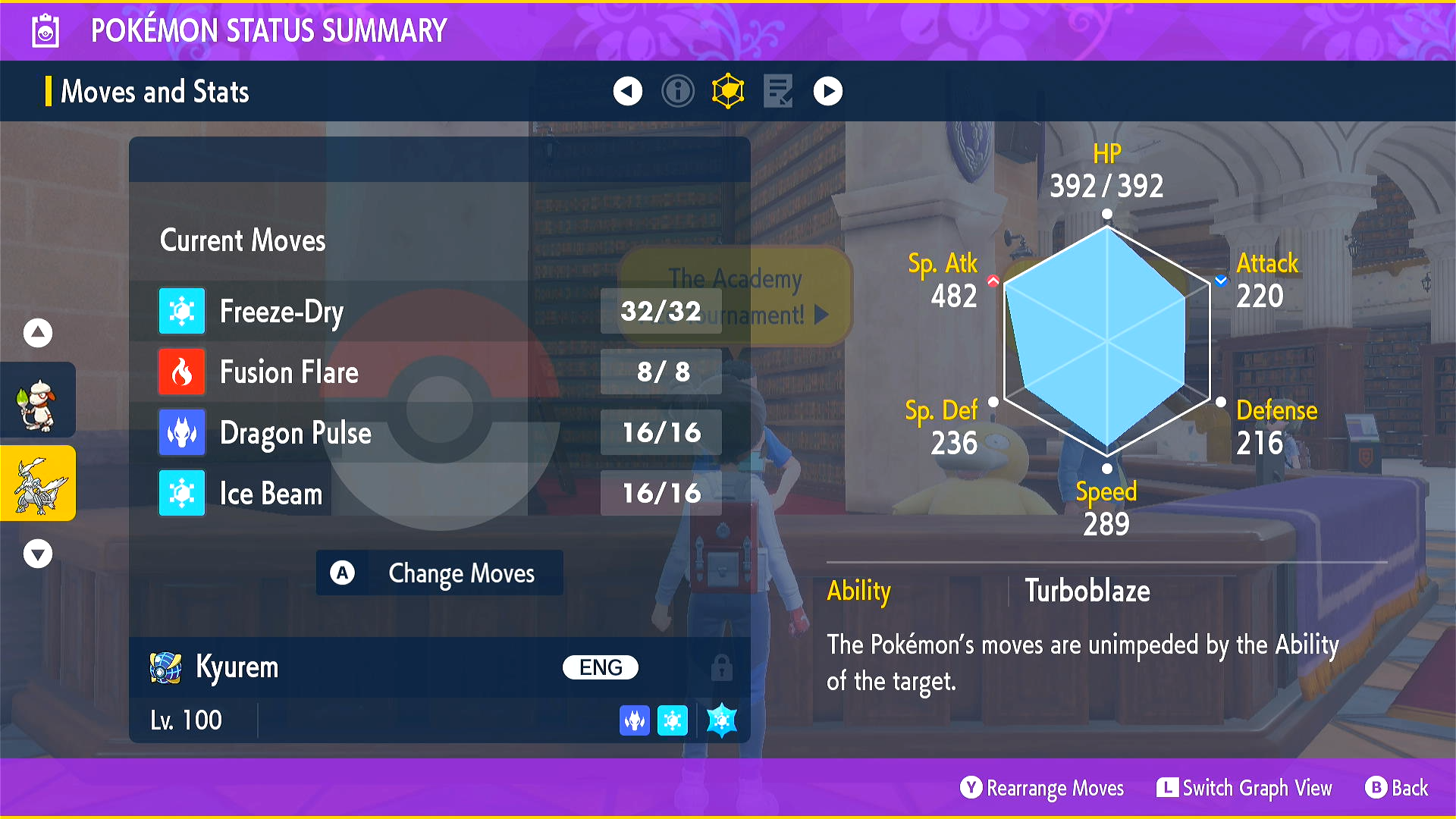 - Sylveon: The same one from the original Tournament Farmer may work if given Choice Specs. While the damage output is higher than Kyurem-W, it is much slower and more fragile. Even at max speed, it may not be able to outrun everything in the Tournament post-DLC2.