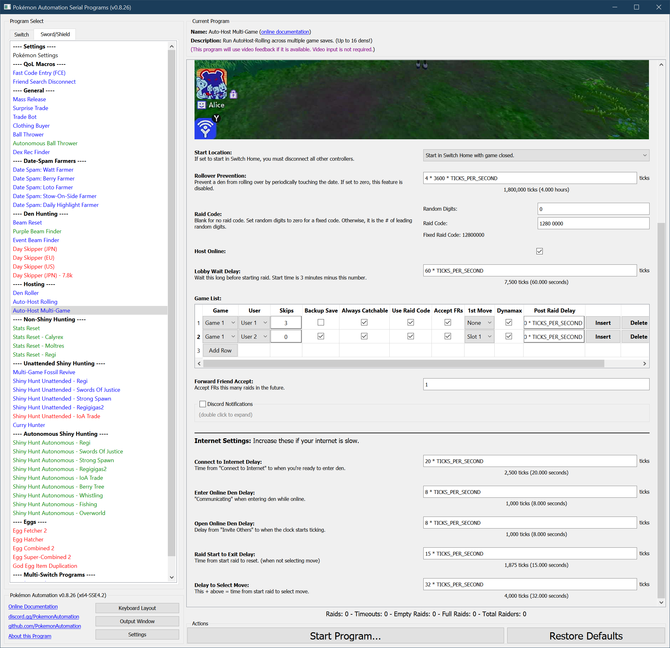 When hosting from both Sword and Shield, the games will swap position each time the program starts the 2nd game. This program knows this and will keep track of their positions. Thus, the slot that you specify is when the program starts, not the slot it will be at when the auto-host reaches that point.