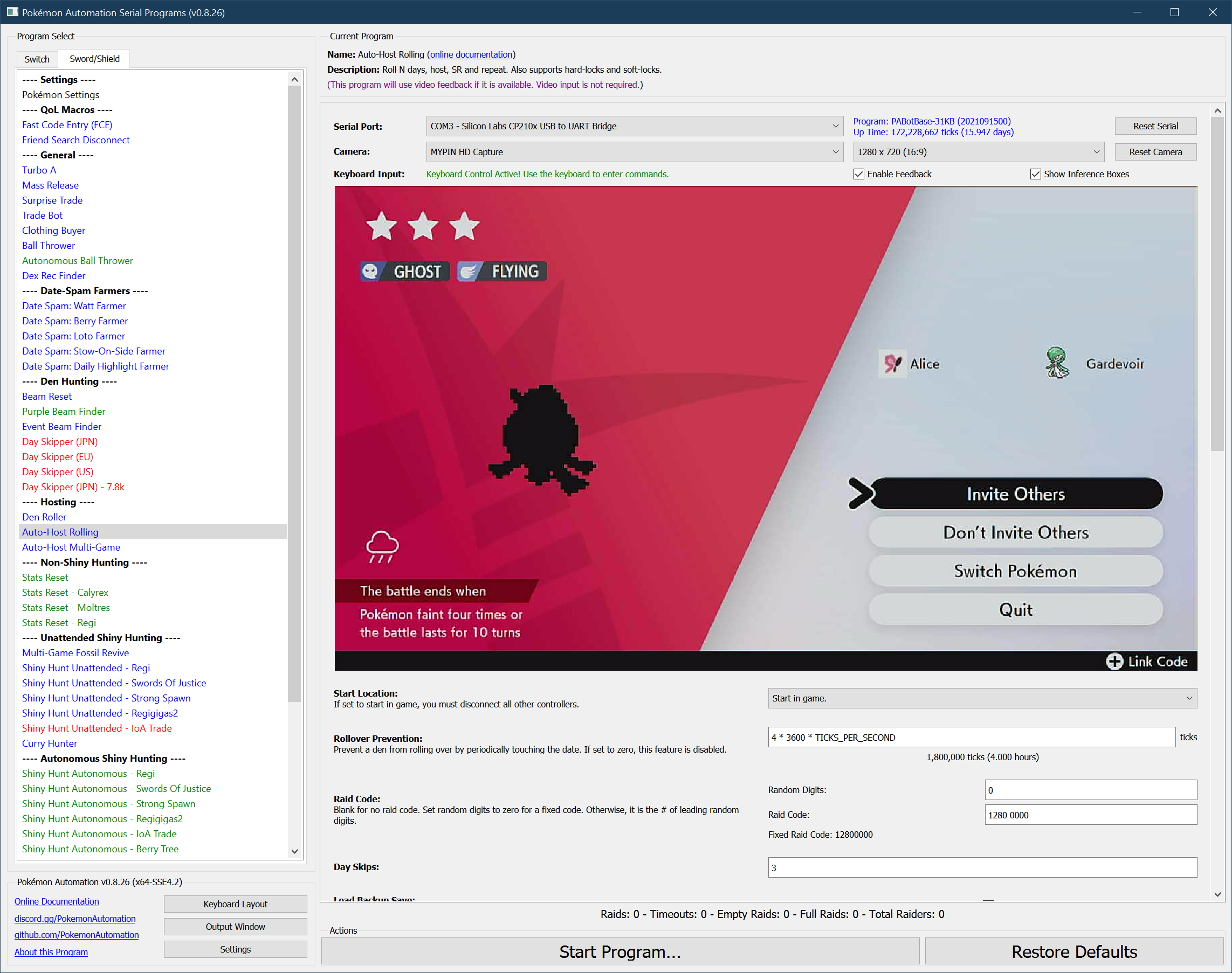 If video feedback is disabled, this program behaves identically to the microcontroller AutoHost-MultiGame.