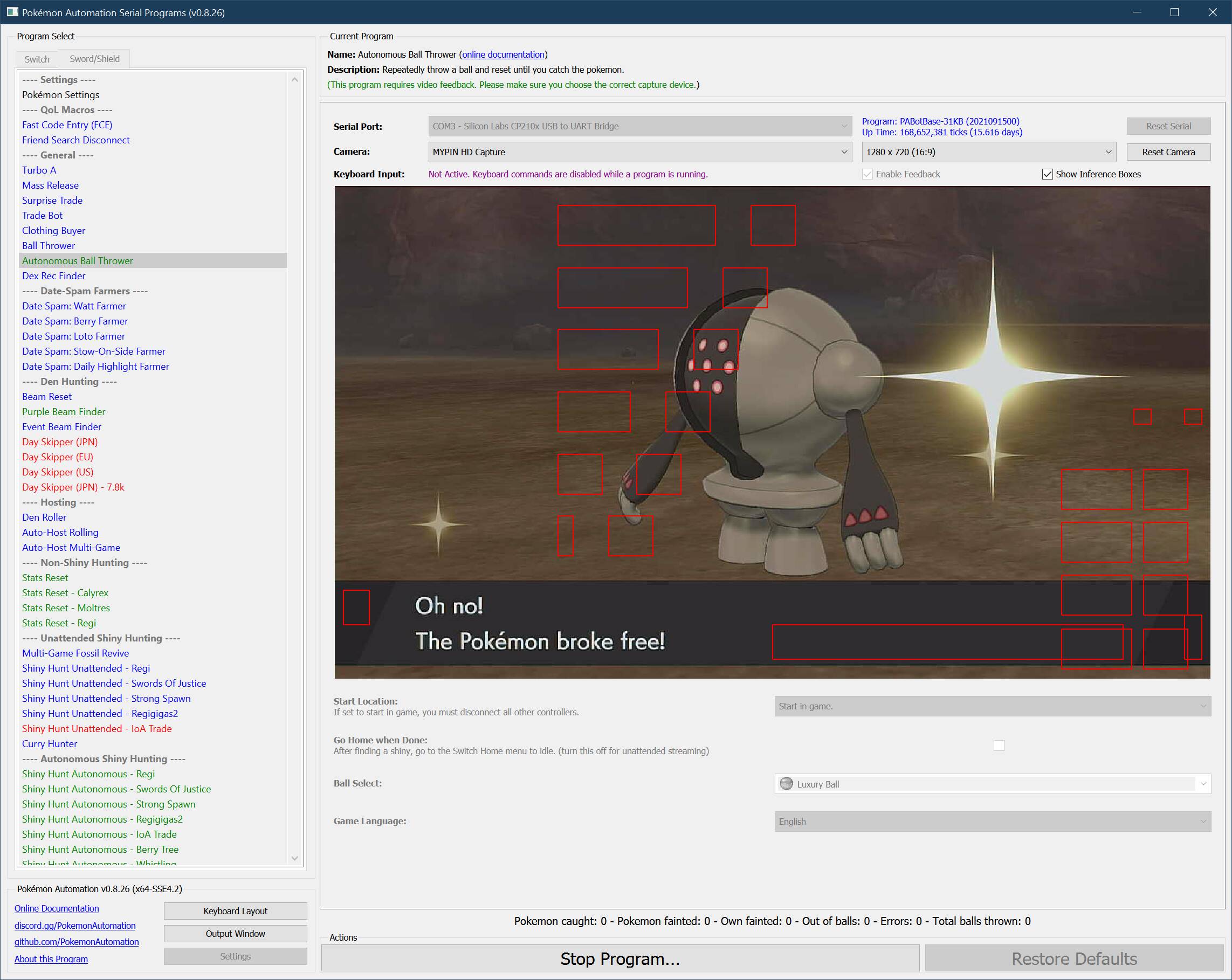 - Run the program and let the Pokémon attack you (alternatively, you can manually trigger the fight yourself but it will wait forever if you need to reset).