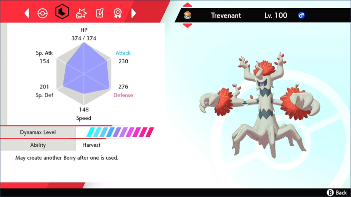 - Early in the battle, you should send out Trevenant and use both Skill Swap and Trick. This moves the PP-restoring Leppa Berry onto the opposing Pokémon and changes its ability to Harvest so that the berry is restored after use. This setup prevents it from ever running out of PP.