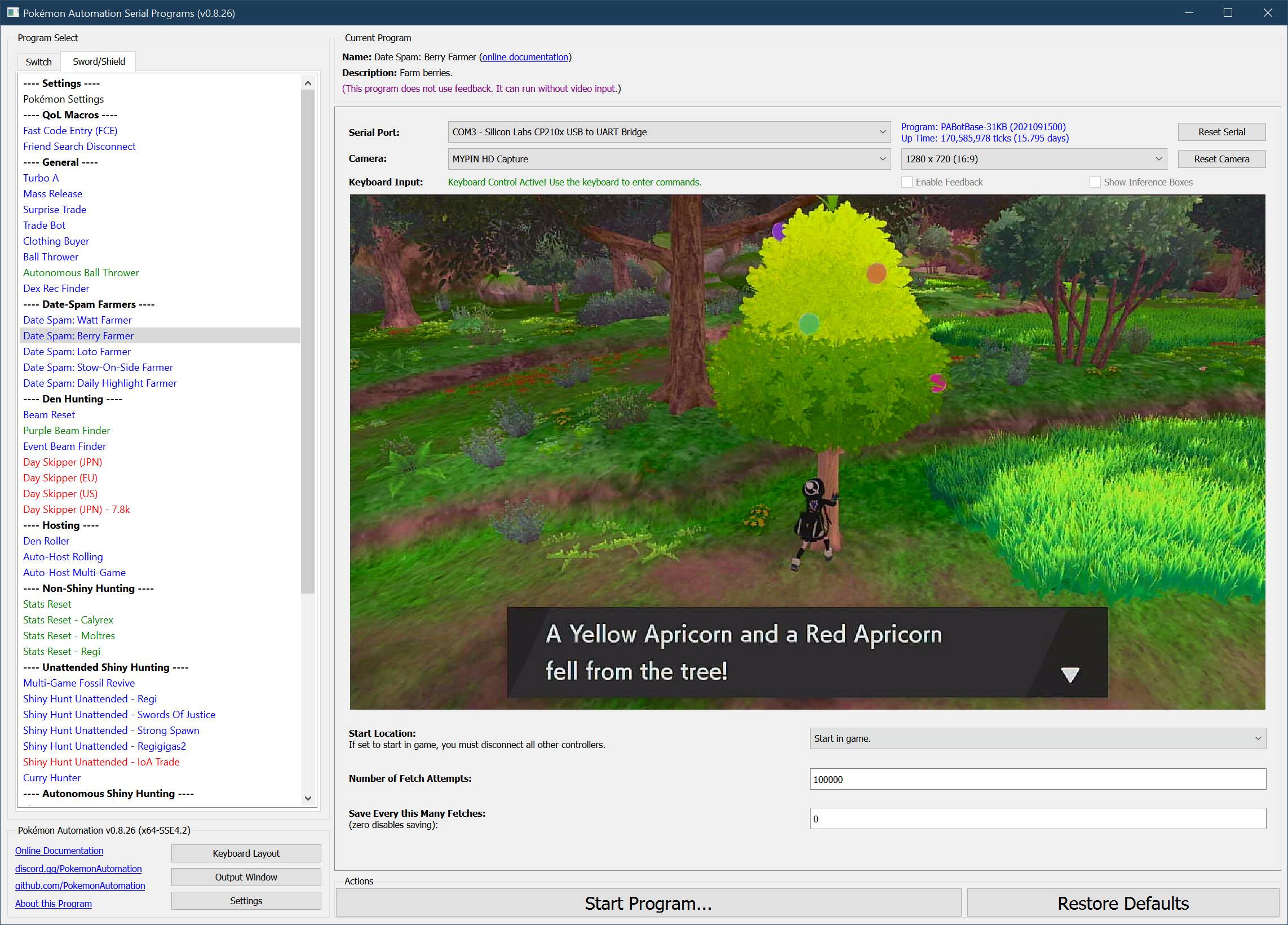 Stability Recommendation: Stand behind the berry tree so that the tree is directly in front of (and blocking) your character. Sometimes, the program will miss a button press which causes the date-spamming to happen in the game instead of the Switch settings. This will cause the character to move downwards and away from the tree if you're not standing behind it.