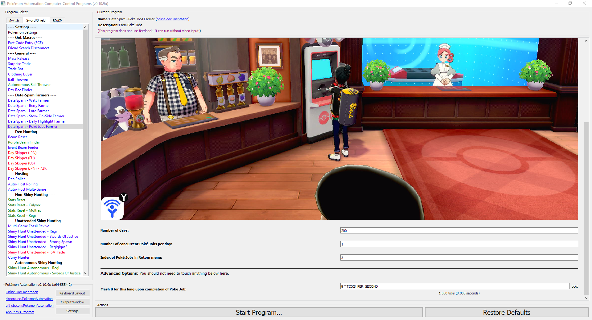 The default settings for this program completes a single Poké Job per day during 200 days.