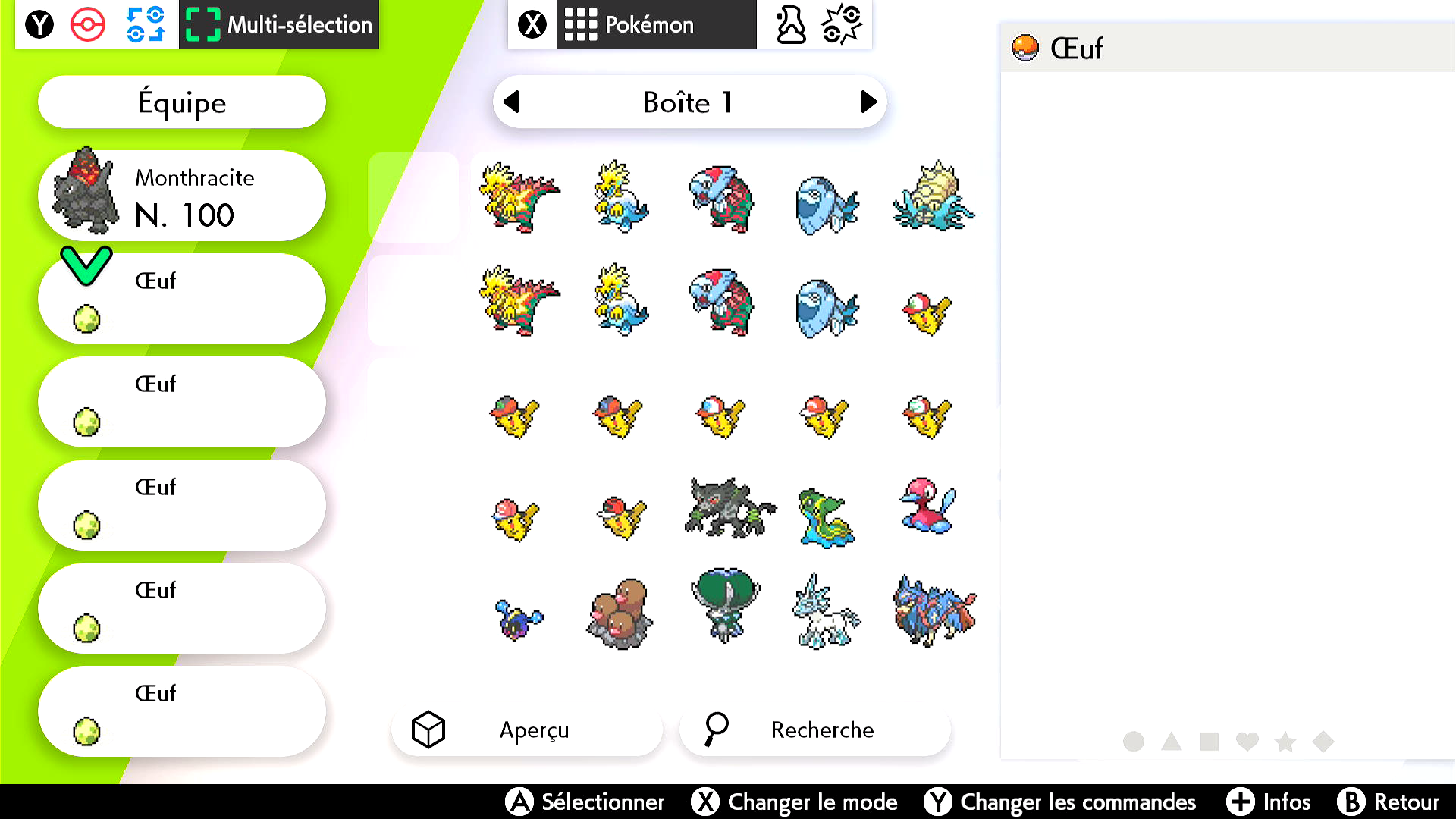 Once it has fetched 5 eggs and hatched all 5 eggs in your party, it will enter the box system and check each of the 5 babies in your party. Each baby is run through the Actions Table. Depending on what conditions are matched, the baby will be either released, deposited into the left box, or the program will stop.