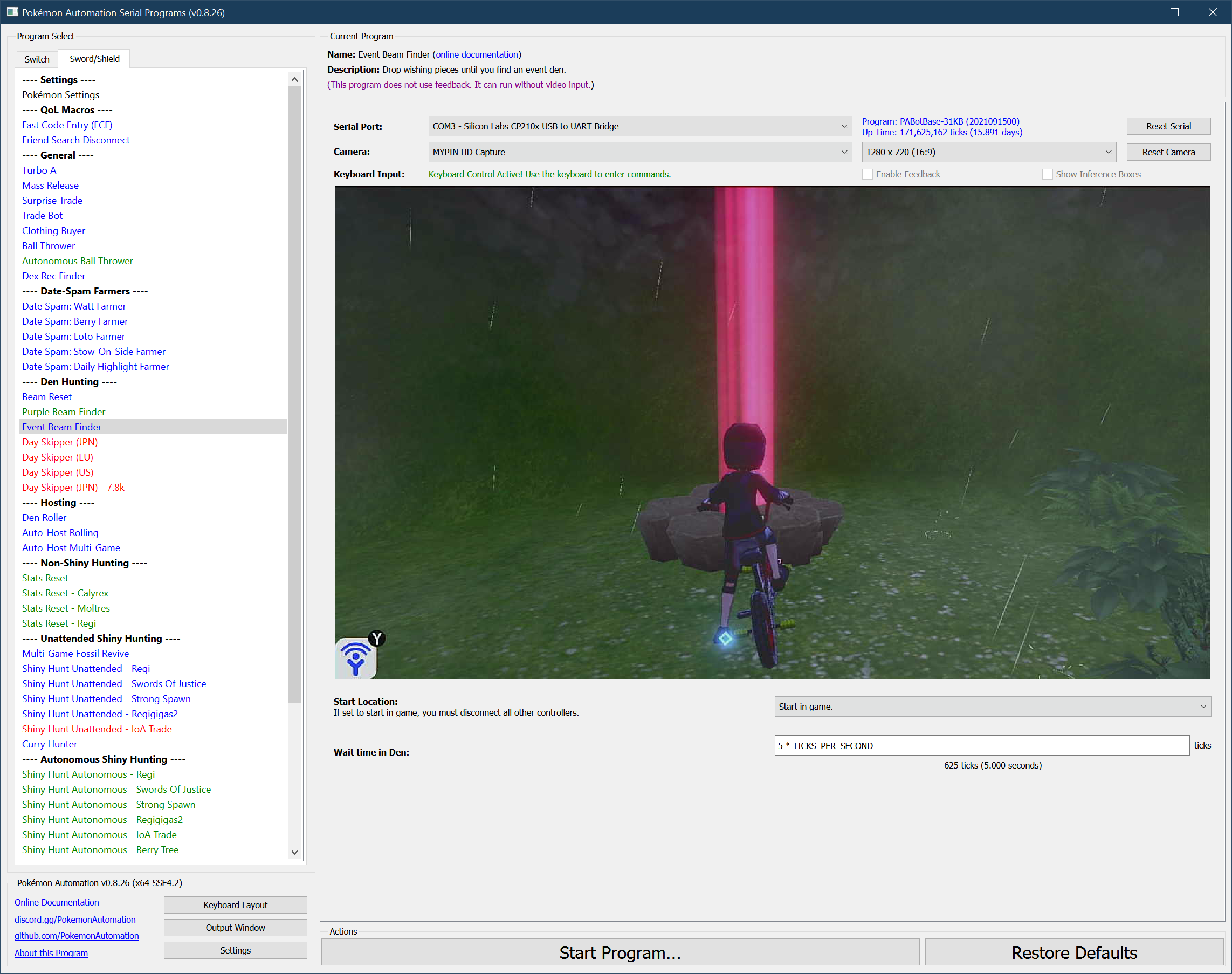 The program will travel back-and-forth between the two dens closest to the Bridge Field daycare center. Each time, it will drop a wishing piece and enter the den to let you view it.