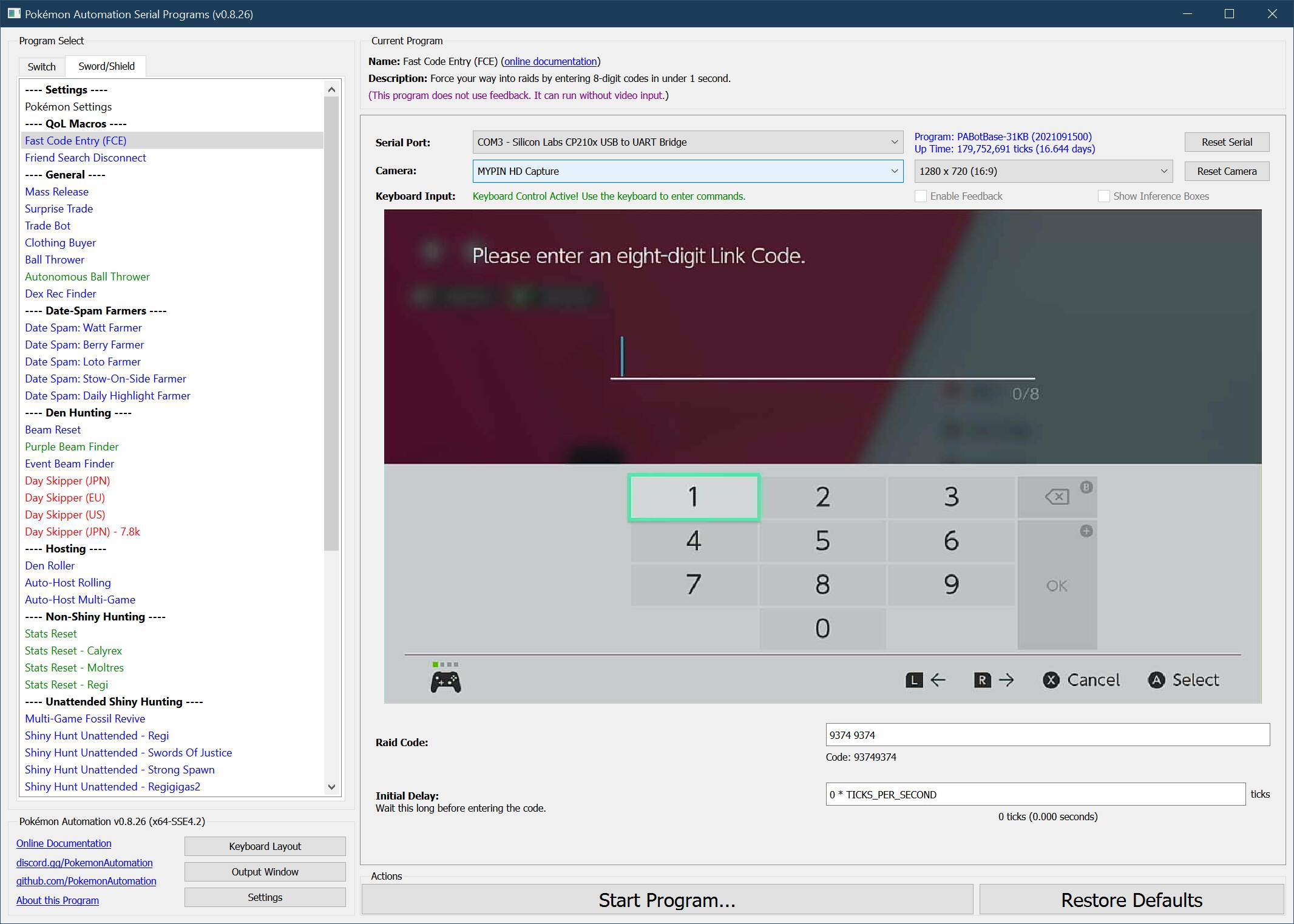 This is one of the most evil programs. FastCodeEntry can enter any 8-digit raid code in about ~0.5 seconds. This includes complicated codes that require multiple keypad traversals.