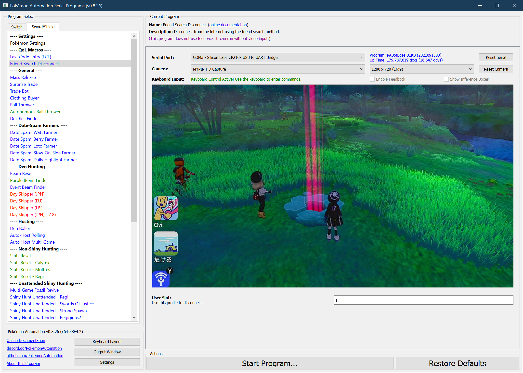The program will quickly enter the Switch Home, navigate to the specified user profile, and perform a friend-search to disconnect from the internet.