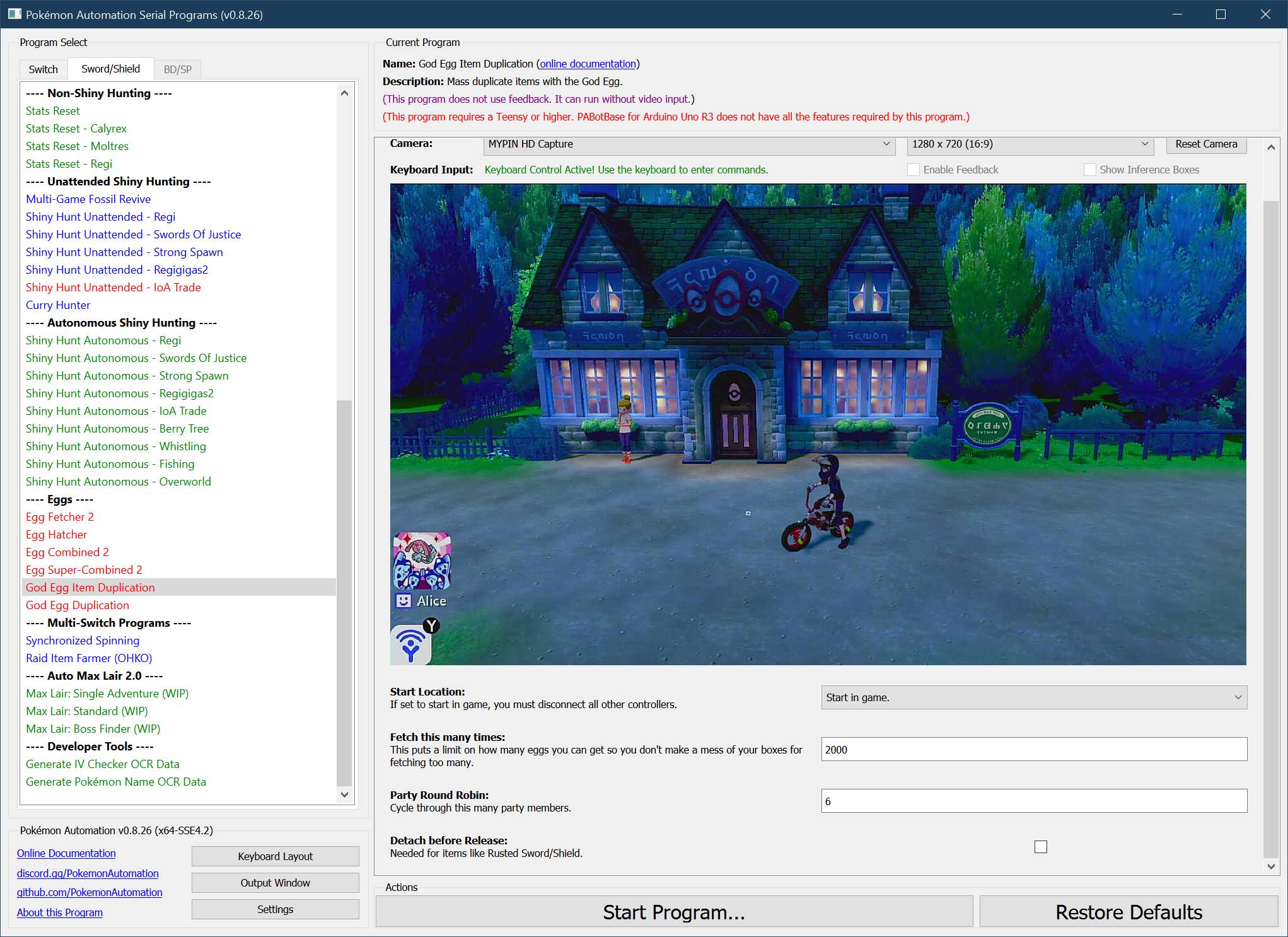 The program will clone each Pokémon in your party, take its item, and release it. Then it repeats the process forever.
