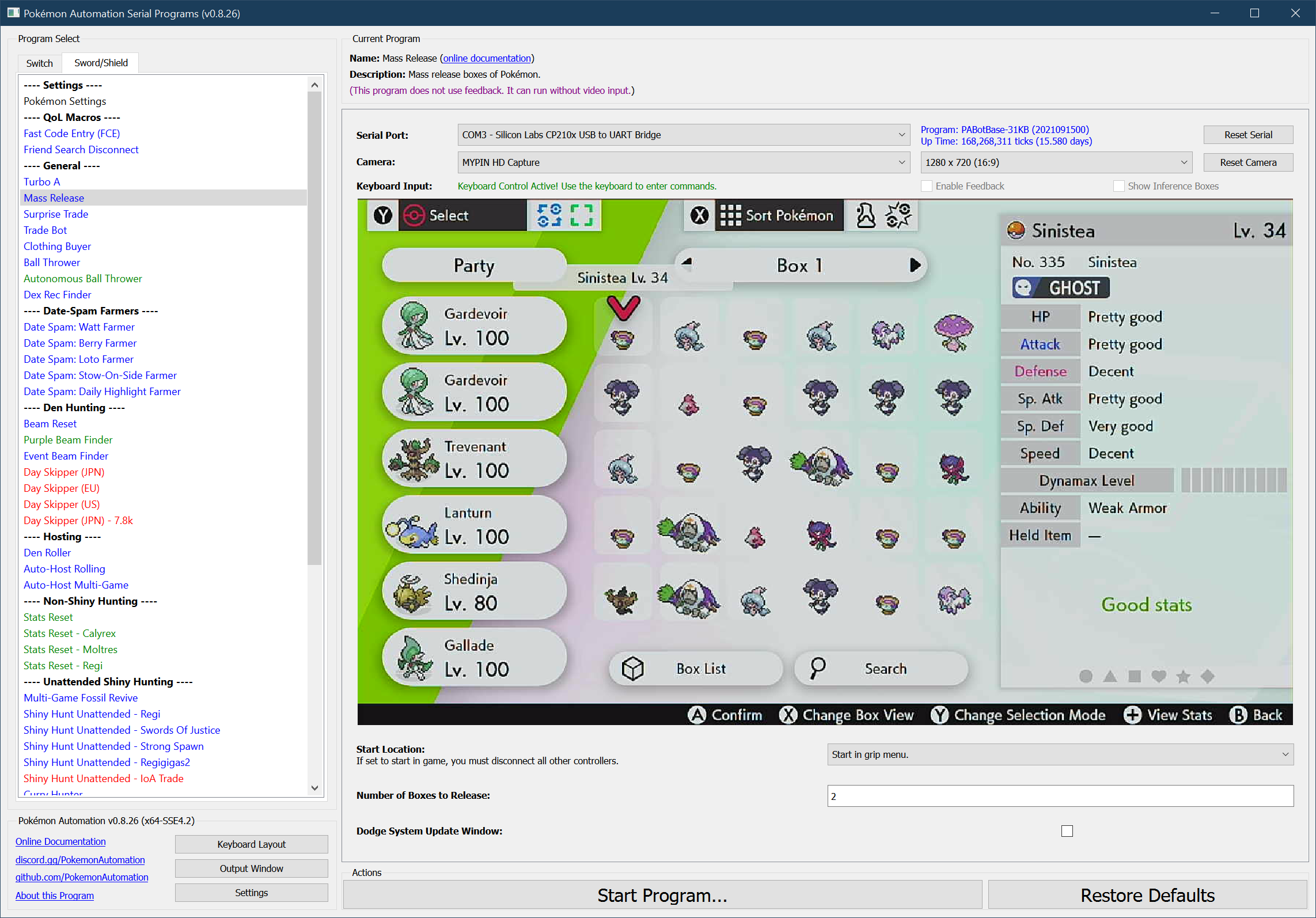 - Place entire boxes filled with Pokémon to be released consecutively.