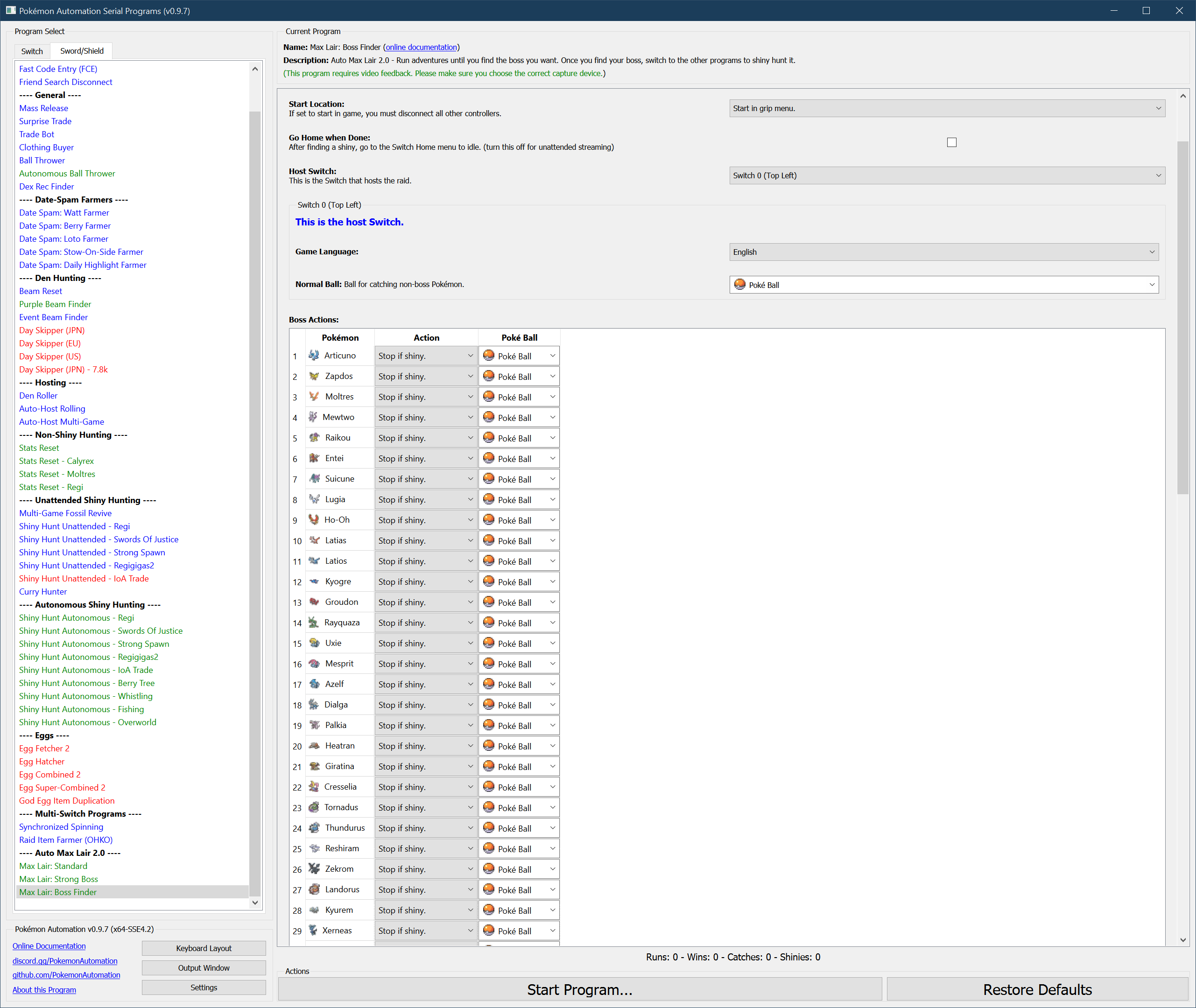 This program looks for a specific boss. It runs adventures with random bosses until it reaches a specific stop condition. It does not reset the game or try to preserve balls, thus the path is random every time.
