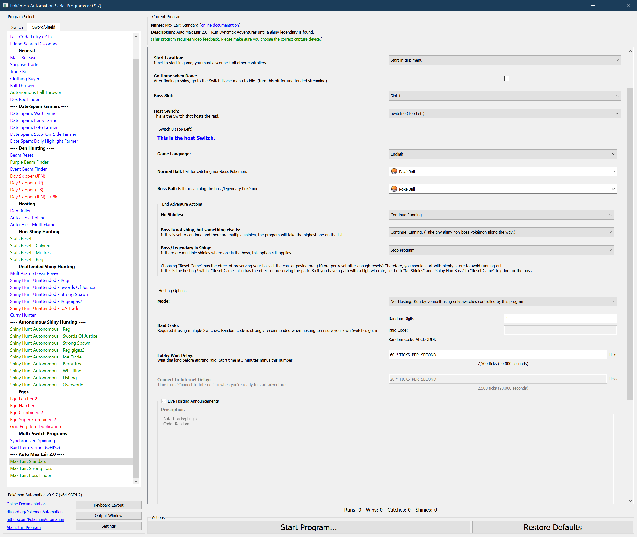 This program normally runs with random paths, but it can be configured to keep a specific path by setting the host to reset. (thus achieving the "Keep Path" functionality from the original AutoMaxLair)
