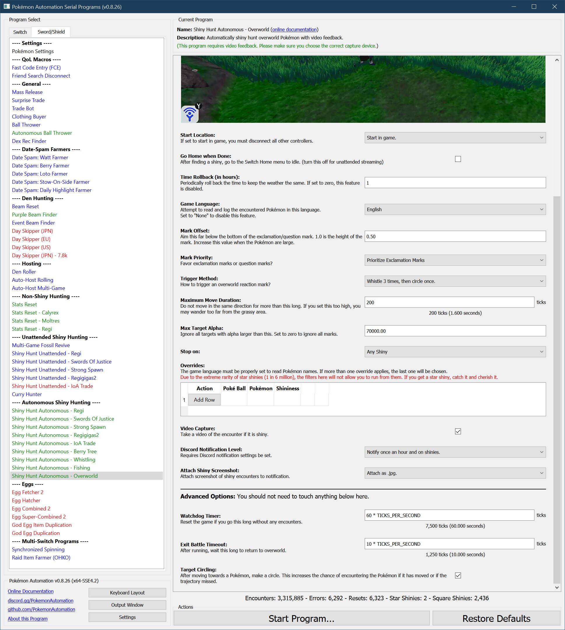 Shiny Hunt (Autonomous) - Overworld¶