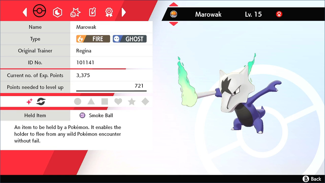 - Go into your Pokémon summary to move the Smoke Ball from the 2nd Pokémon to the lead Pokémon.