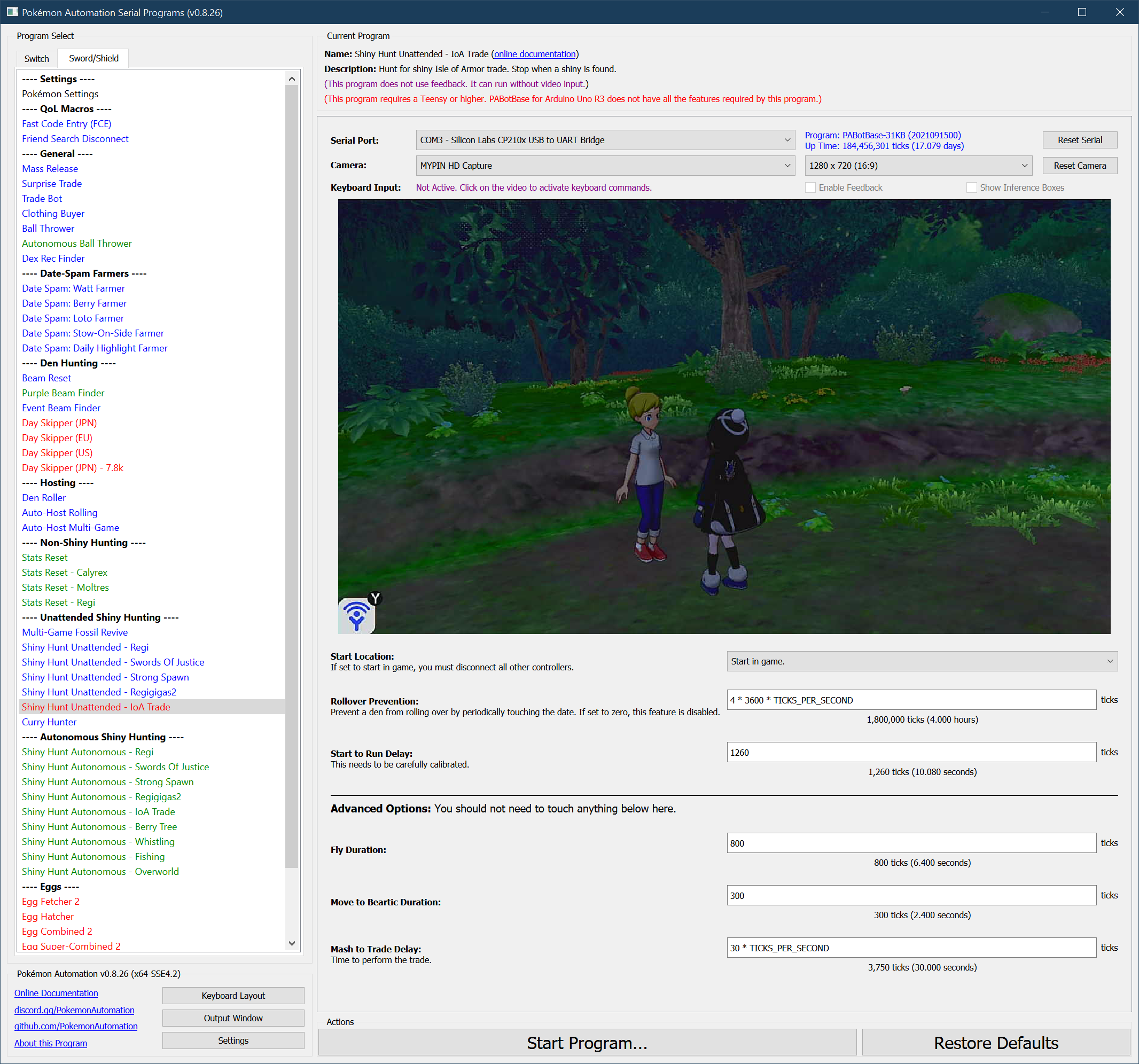 Shiny Hunt (Unattended) - Isle of Armor Trade (deprecated)