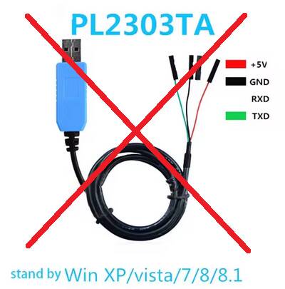 DO NOT get cables with the Prolific controllers. e.g. PL2303 or any other model number. They are cheap, do not work, and they are explicitly blocked in the program. They often look deceptively similar to the Adafruit UART, but they are not the same. If you buy outside of this link, verify it does not use PL controllers. If you buy it anyway, you will be wasting your time and money. YOU HAVE BEEN WARNED!