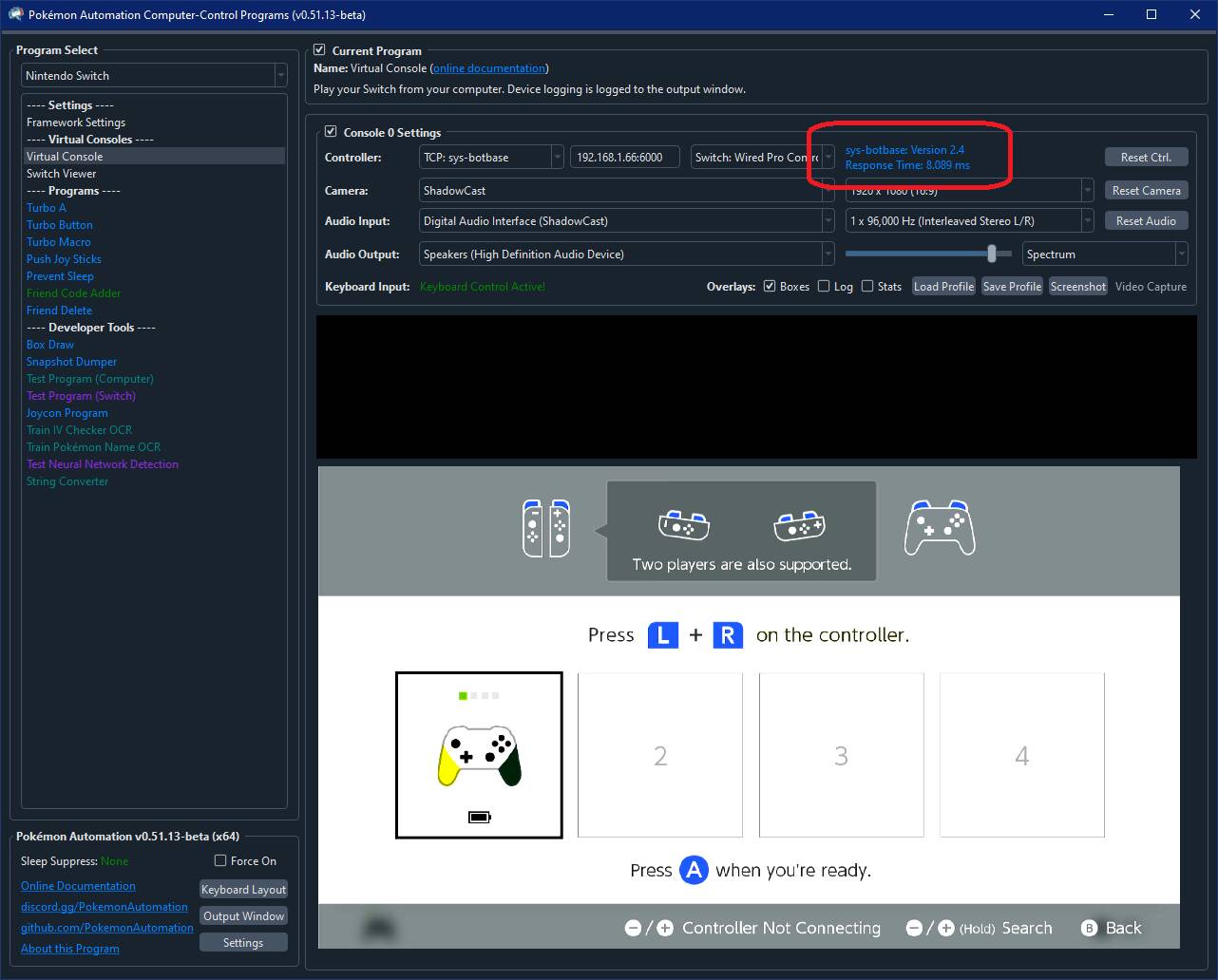 If you do not have CFW (and are thus starting from scratch), we recommend going back and choosing one of the other controller options as they are more reliable than this option. You do not need CFW or sys-botbase to run CC programs. Likewise, the CC programs only use sys-botbase for its controller. It does not touch any of its "hacking" features like reading and modifying game memory.