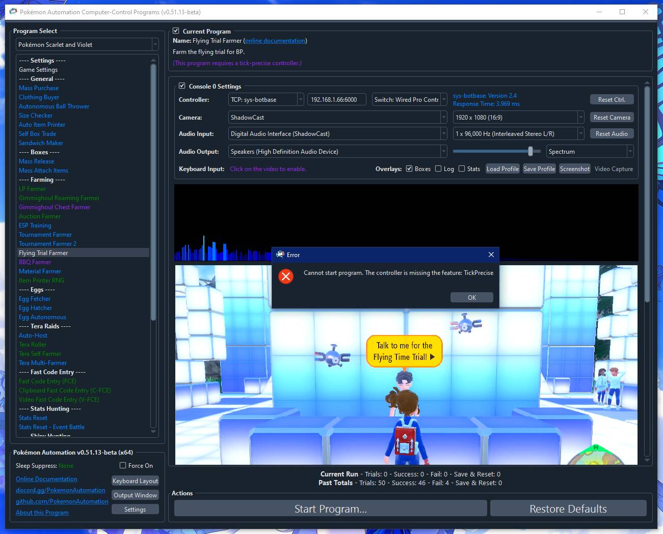 "Cannot start program. The controller is missing the feature: TickPrecise"¶