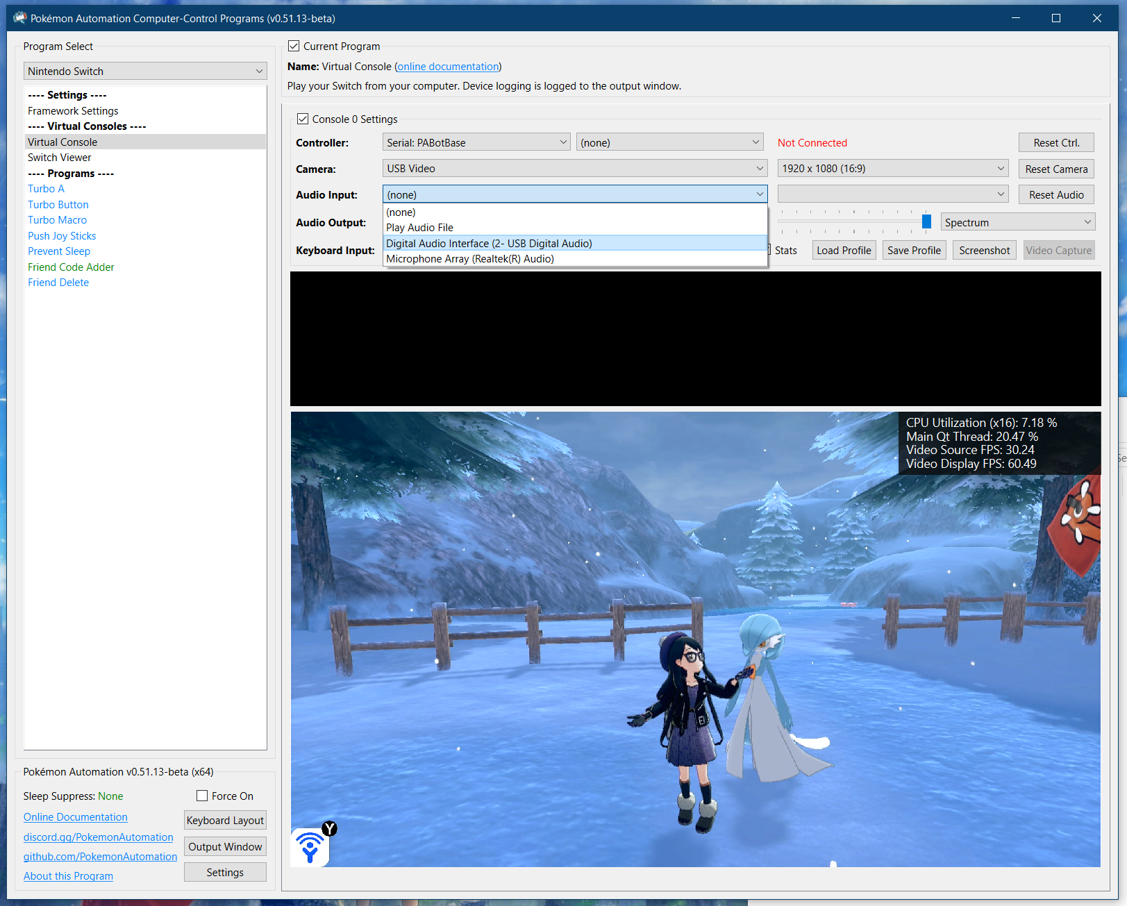 Of course there are many other programs that can also play video and audio from your Switch through a capture card. But in the next step, we will be connecting a controller to it to allow the program to play (and automate) your Switch!