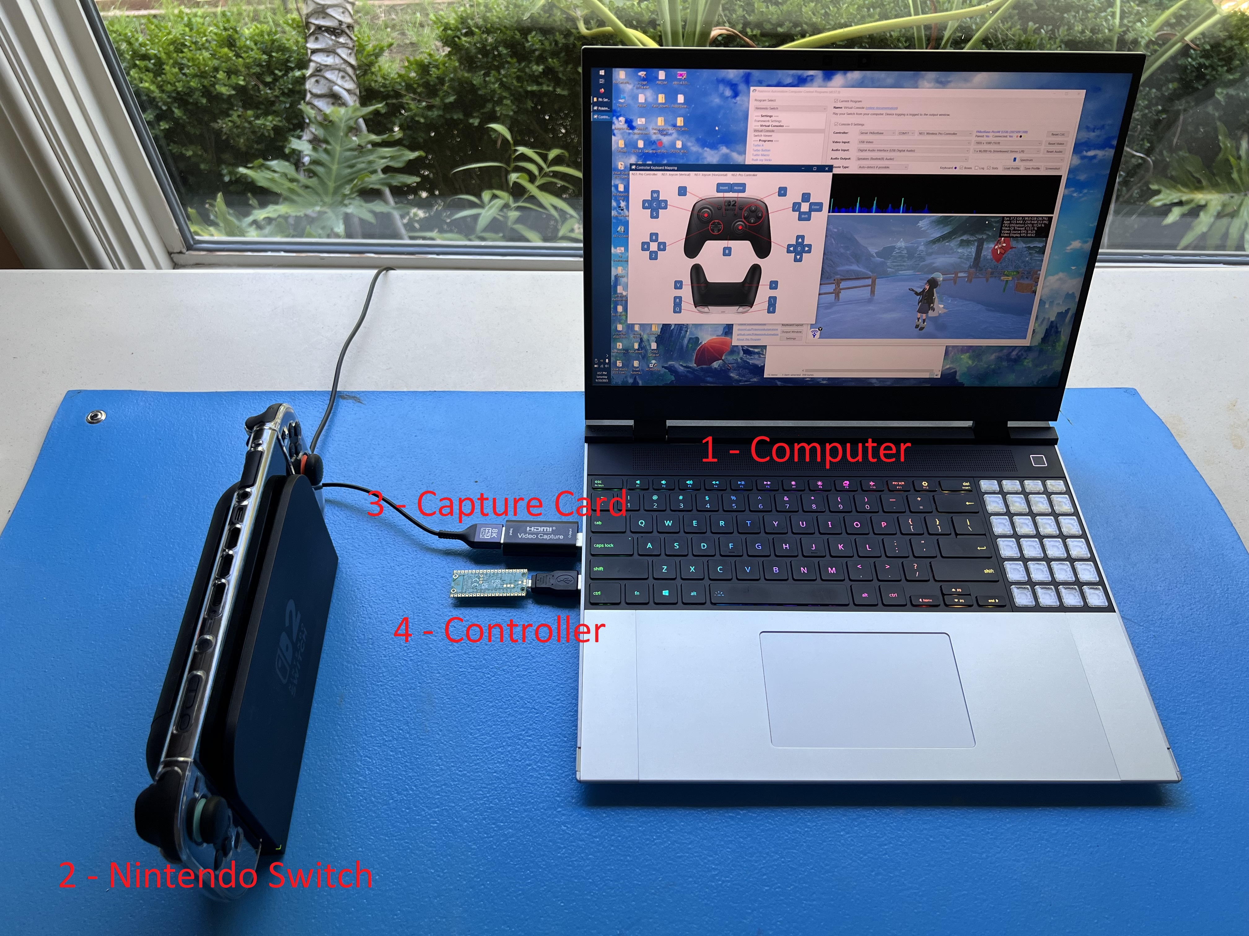 The computer is the player. The capture card is its eyes. The controller is its hands.